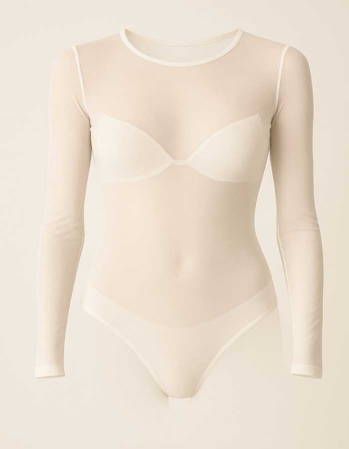 Боди блуза от тюл, ПРАШКА, бял, 066
