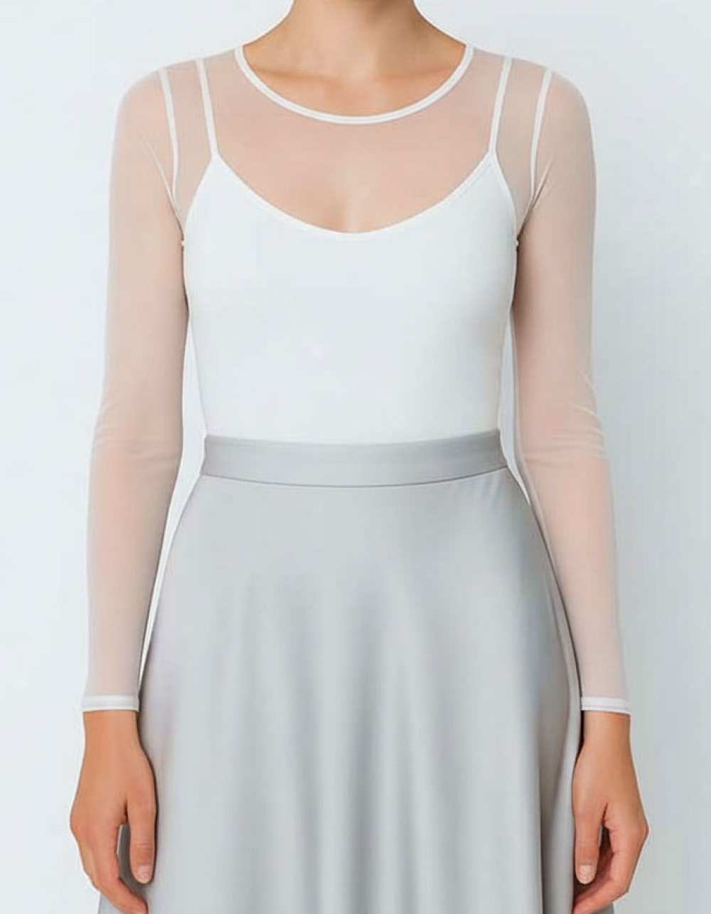 Боди блуза от тюл, ПРАШКА, бял, 056