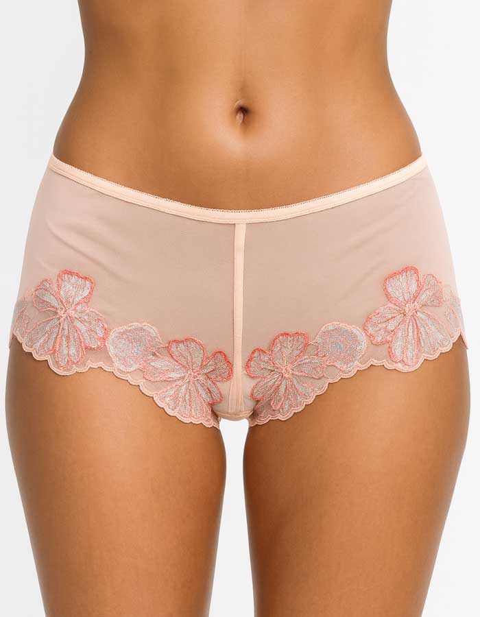 Уникален боксер/ бразилиана с  удобна дълбочина от подбрани бродерии в комбинация с тюл на задна част.
