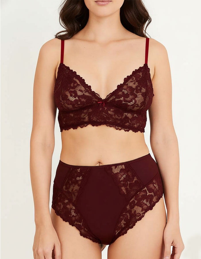 Дантелен комплект от бикина и бралет, бордо, 501258