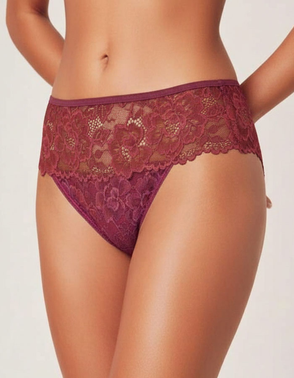 Дантелена бразилиана с удължено памучно парче до дантеления колан, което удобно ще предложи по-завършен вид. Моделът е с нормална дълбочина.