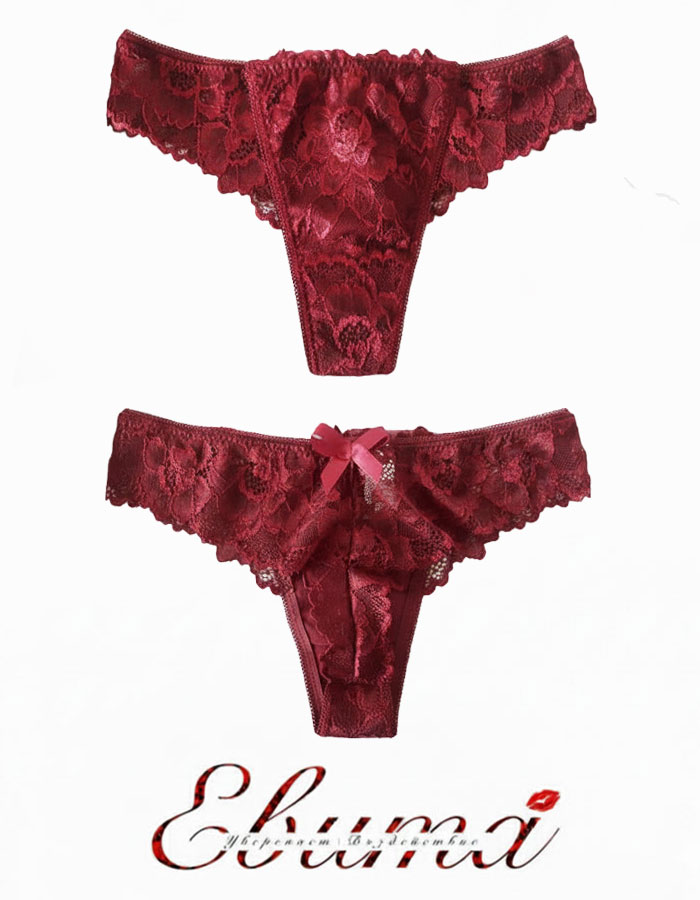 Дантелена бразилиана с панделка отзад, бордо, 407