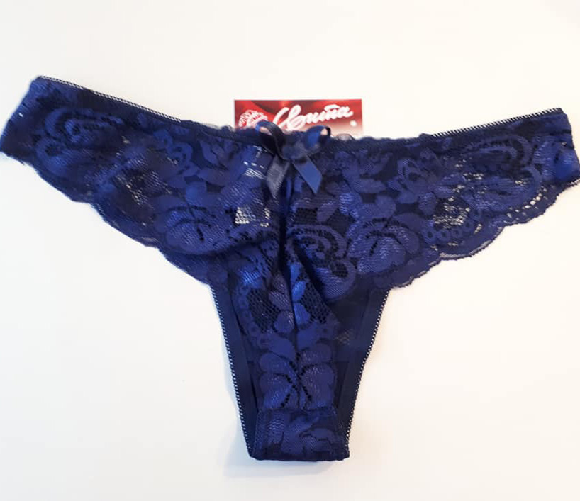 Дантелена бразилиана с голяма панделка отзад, тъмно синьо, 407