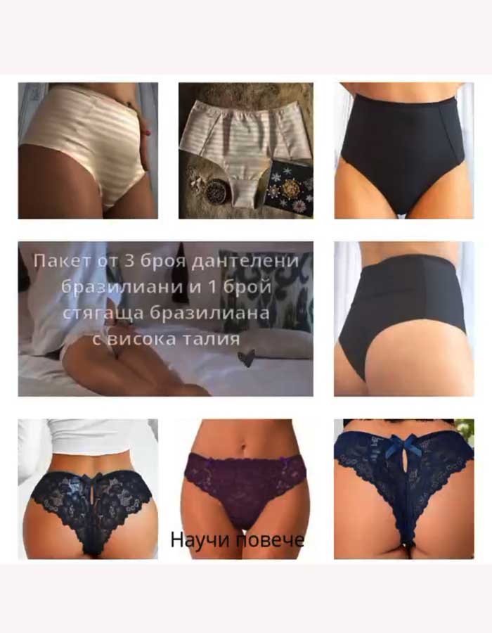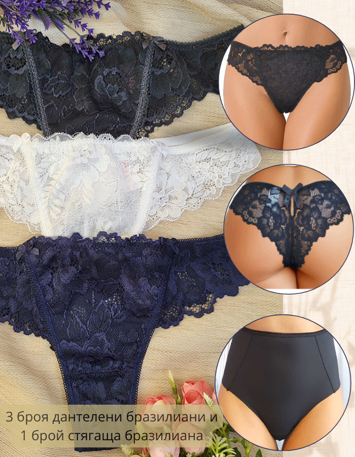 Пакет от 3 броя дантелени бразилиани и 1 брой стягаща бразилиана, 407/081