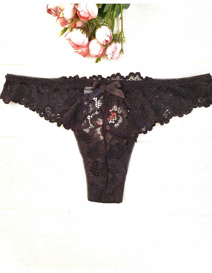 Дантелена бразилиана с голяма панделка отзад, черен , 407