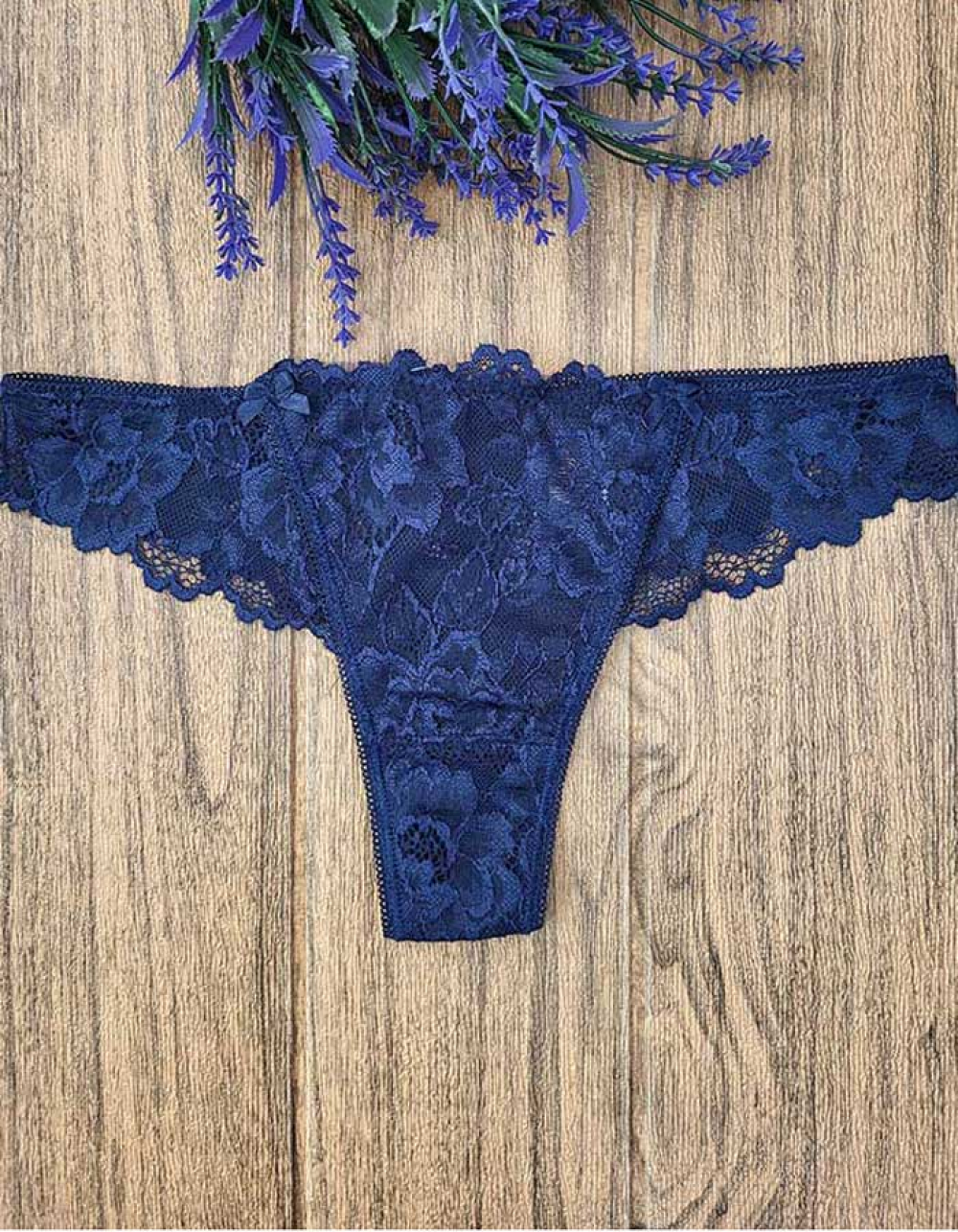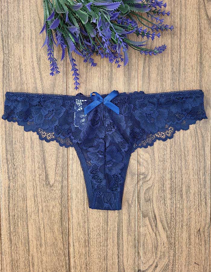 Дантелена бразилиана с голяма панделка отзад, тъмно син, 407