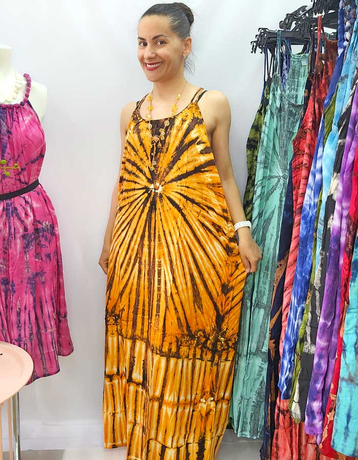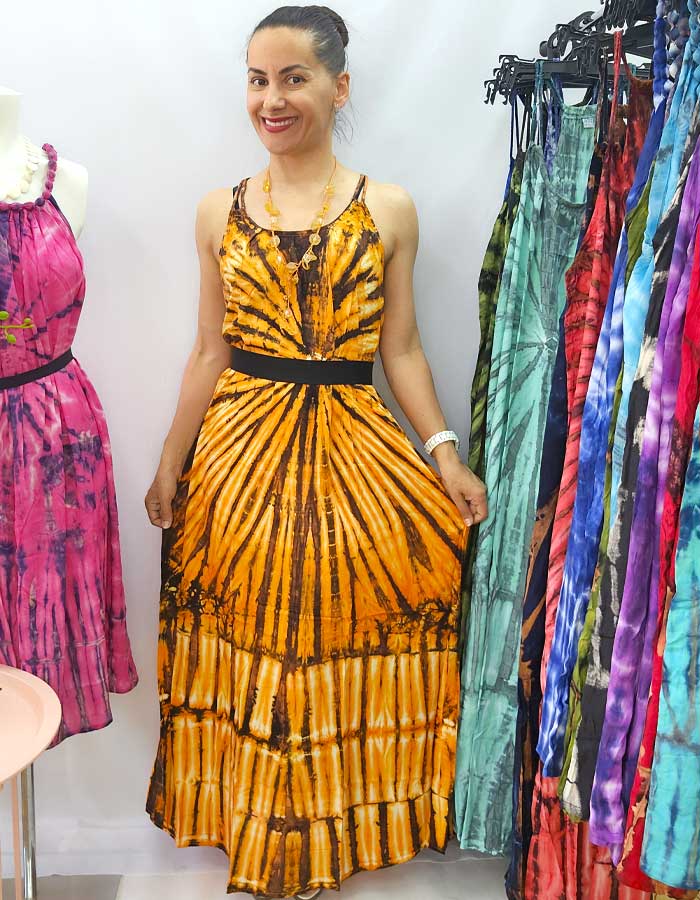 Потопи се в лятното настроение с тази дълга рокля с тънки презрамки и свободна кройка. Изработена от лека естествена материя, тя гали тялото с ефирност и осигурява комфорт през целия ден.