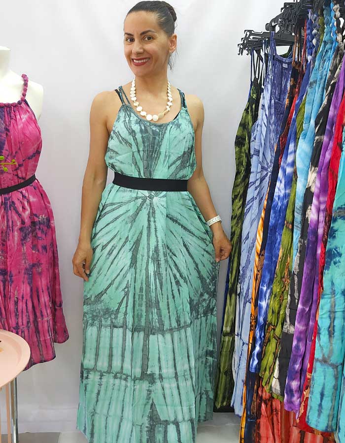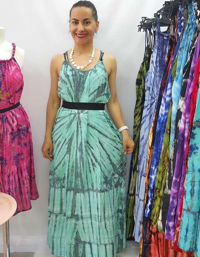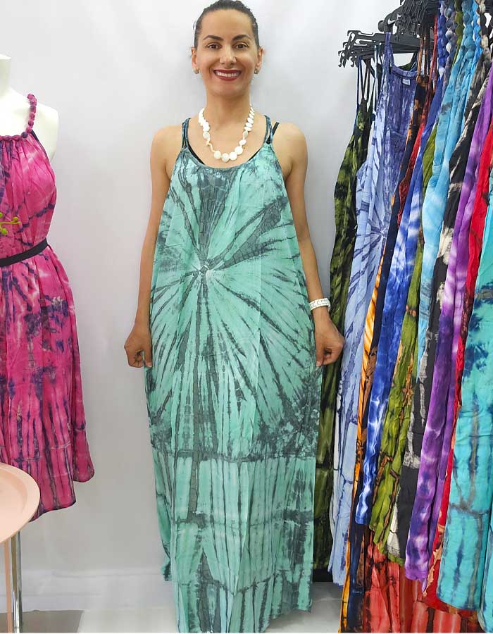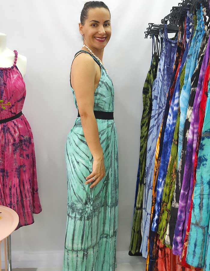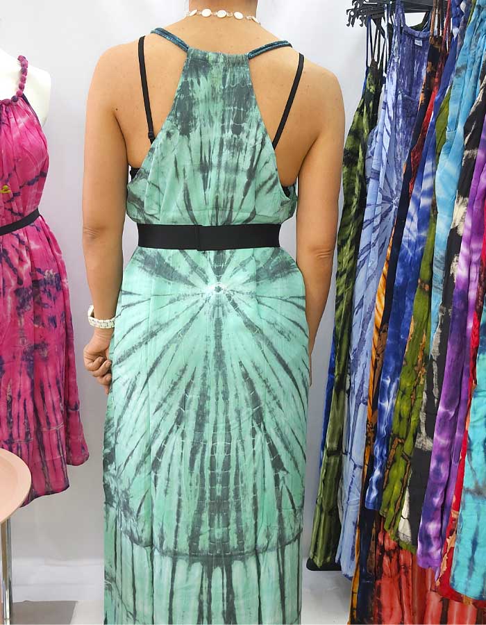 Потопи се в лятното настроение с тази дълга рокля с тънки презрамки и свободна кройка. Изработена от лека естествена материя, тя гали тялото с ефирност и осигурява комфорт през целия ден.