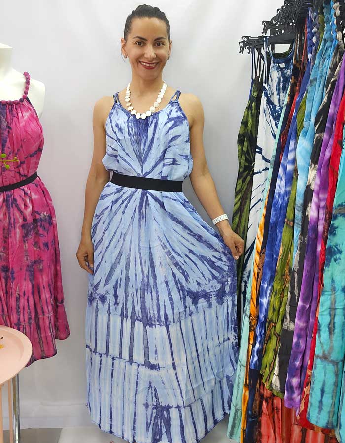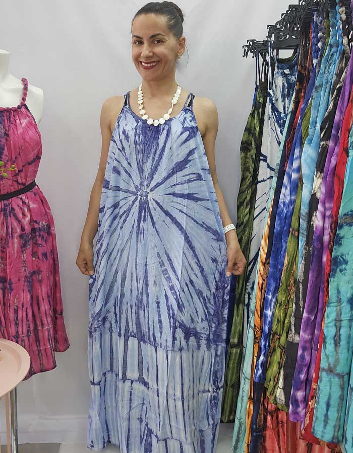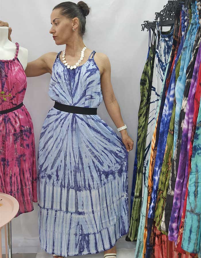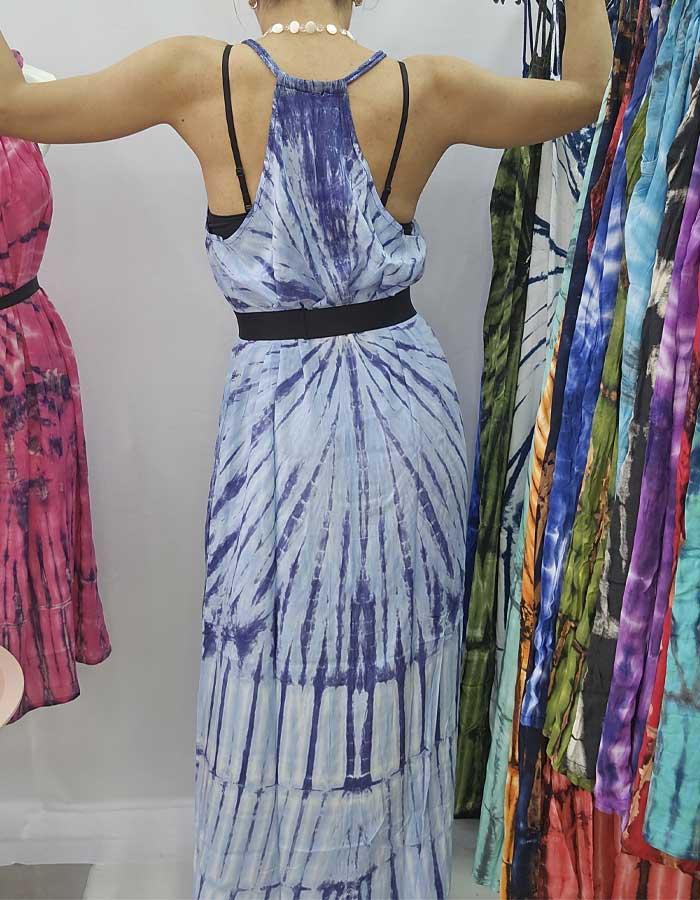 Потопи се в лятното настроение с тази дълга рокля с тънки презрамки и свободна кройка. Изработена от лека естествена материя, тя гали тялото с ефирност и осигурява комфорт през целия ден.