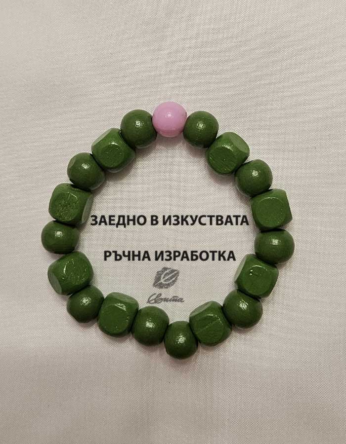 Дървени мънисти, цветно, Зелено