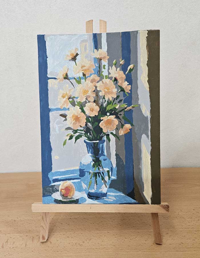 Картина с ваза и букет цветя, акрилни бои, 20/30