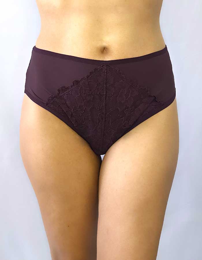• Сет 3 броя луксозни бикини от микрофибър и дантела, Neda, бордо, 65Сет 3 броя луксозни бикини от микрофибър и дантела, Neda, бордо, 65