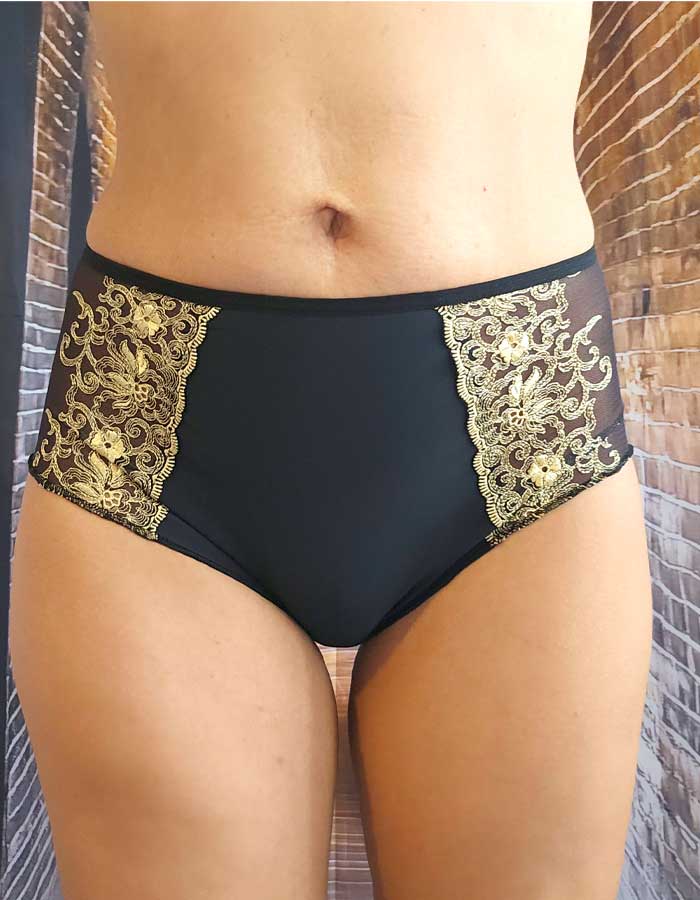 Луксозен боксер от микрофибър и бродерия, Grace, черно със златно,135