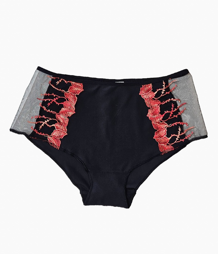 Луксозен боксер от микрофибър и бродерия, Grace, черно с червено, 135