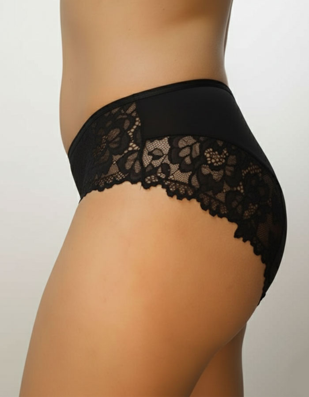 Луксозна бикина със средна дълбочина от микрофибър и дантела, черен, 194