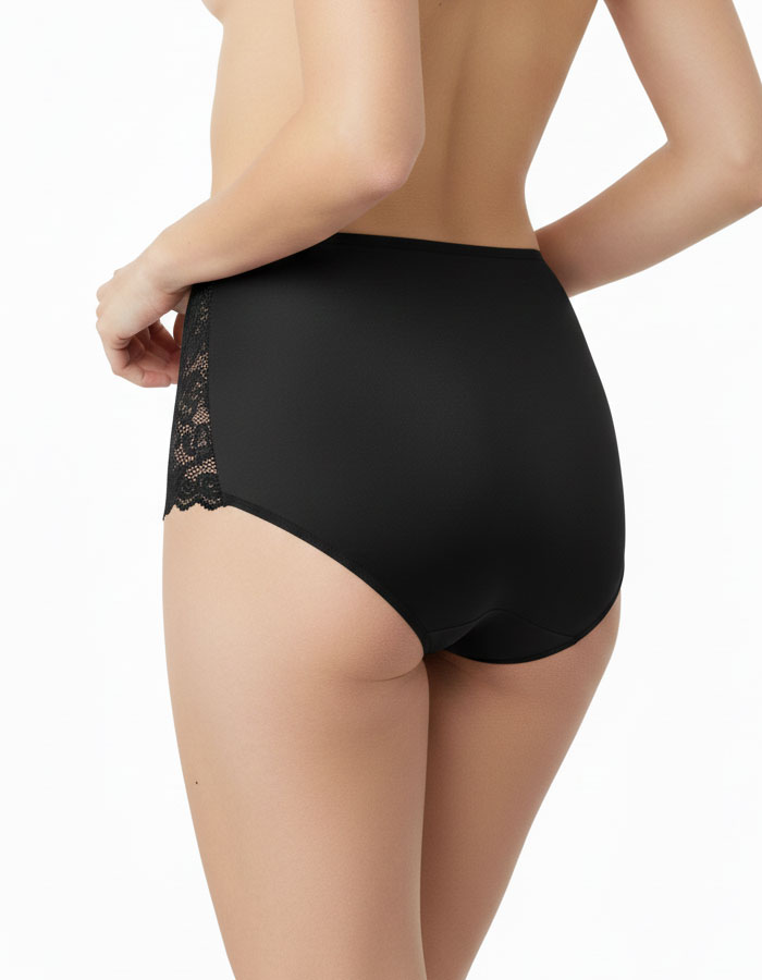 Моделът е с висока талия, широко странично затваряне и удобно голямо памучно парче на коремната зона.