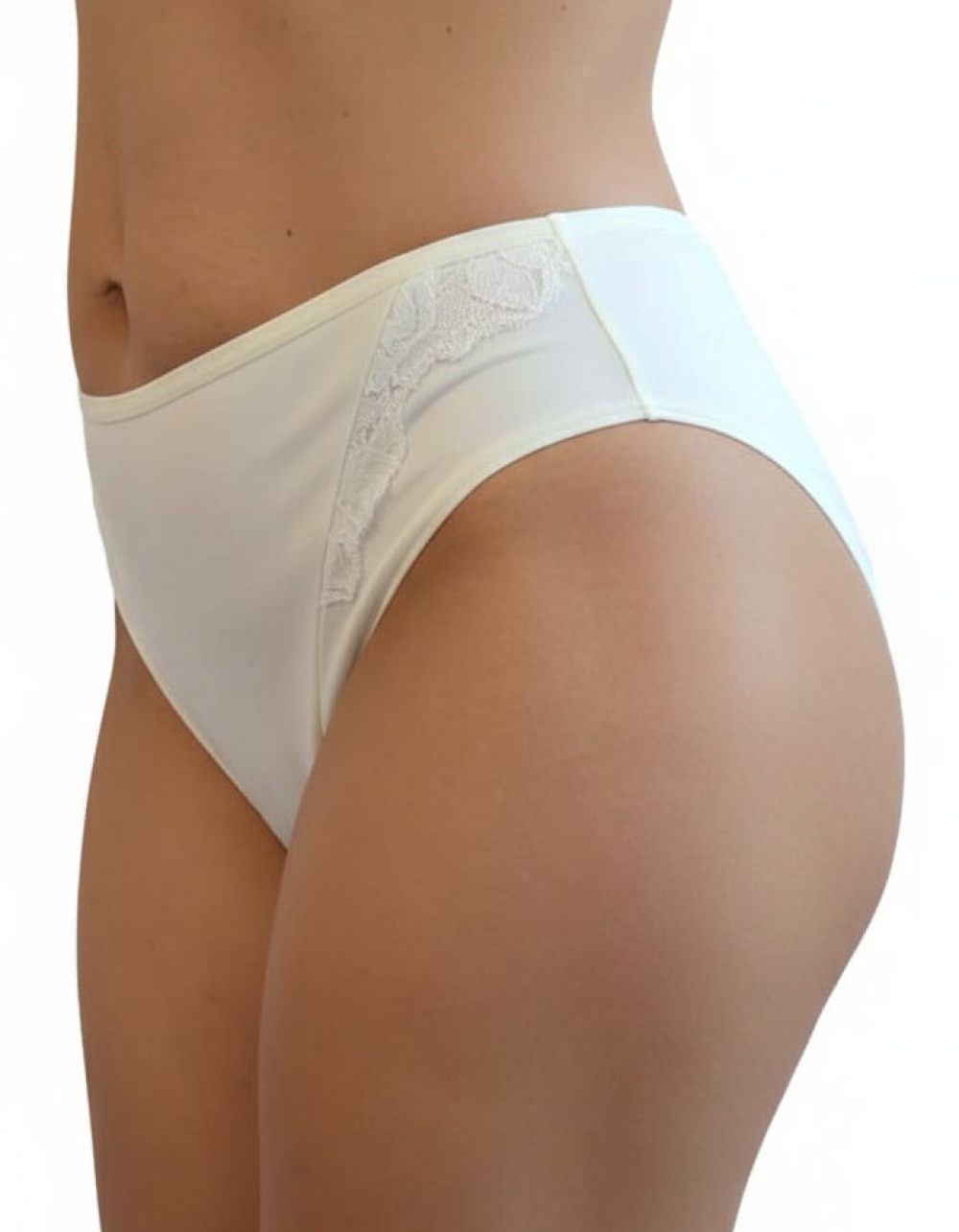 Тази бикина със средна талия е изработена от микрофибър, който придава несравнен комфорт, а красивата дантелена притурка добавя допълнителна доза разкош.