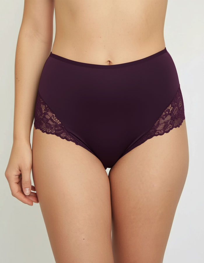 • Луксозна бикина с висока талия от микрофибър и дантела, бордо, 274Луксозна бикина с висока талия от микрофибър и дантела, бордо, 274