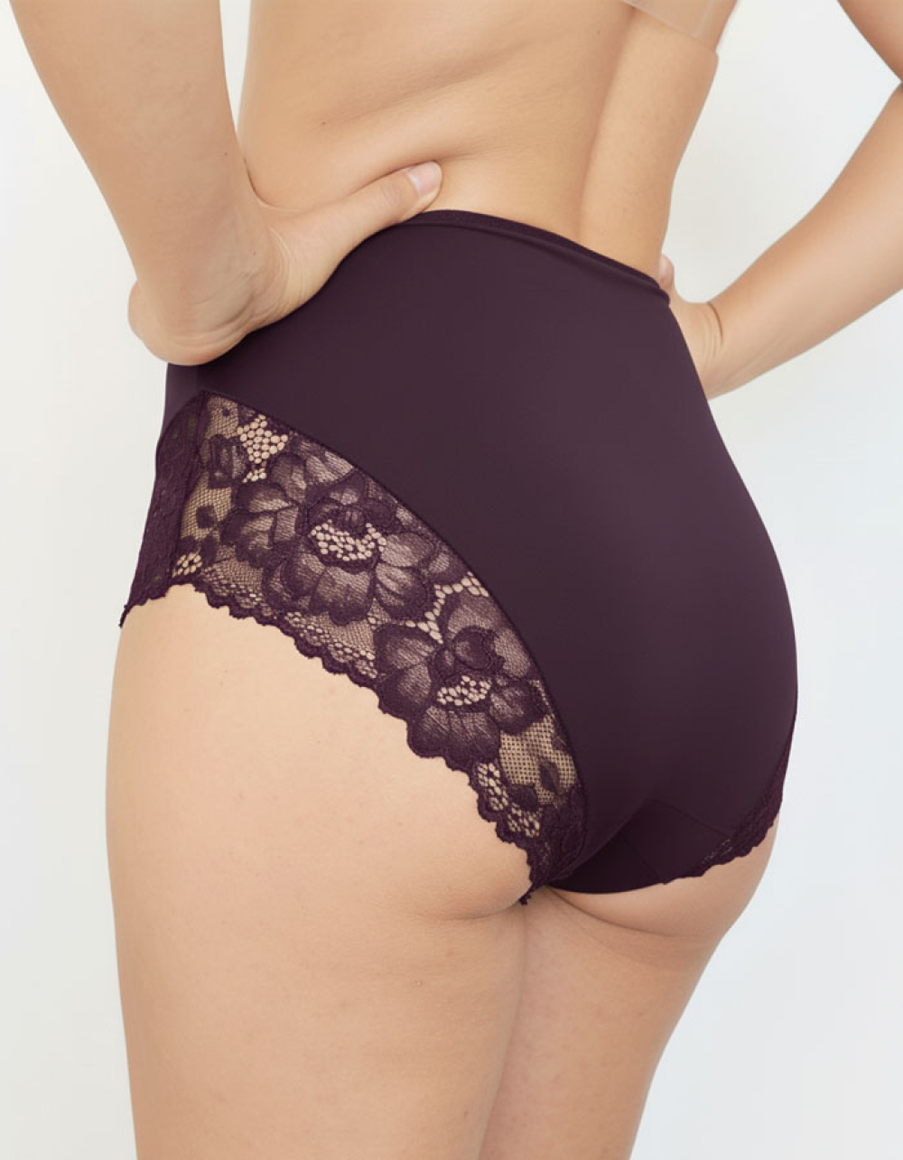 Луксозна бикина с висока талия от микрофибър и дантела, патладжан, 274