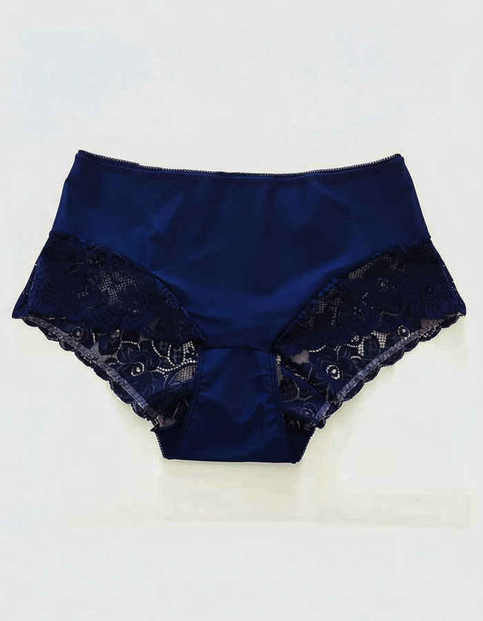 Луксозна бикина с висока талия от микрофибър и дантела, тъмно син, 264