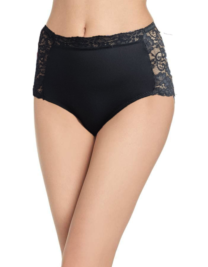 - Бикина с висока талия, изработена от микрофибър и дантела.