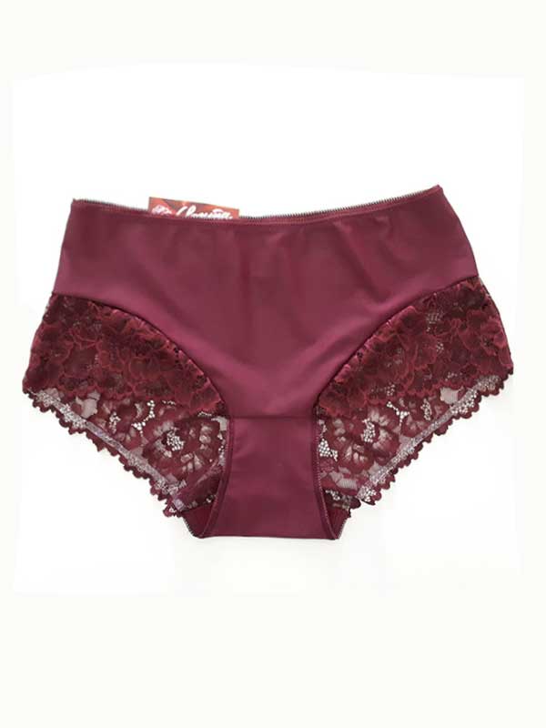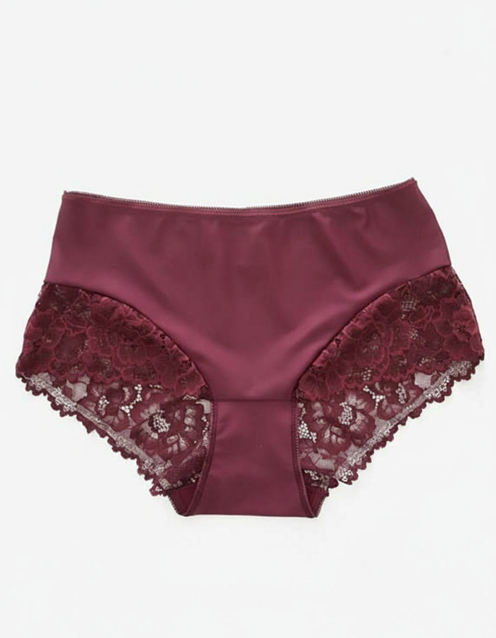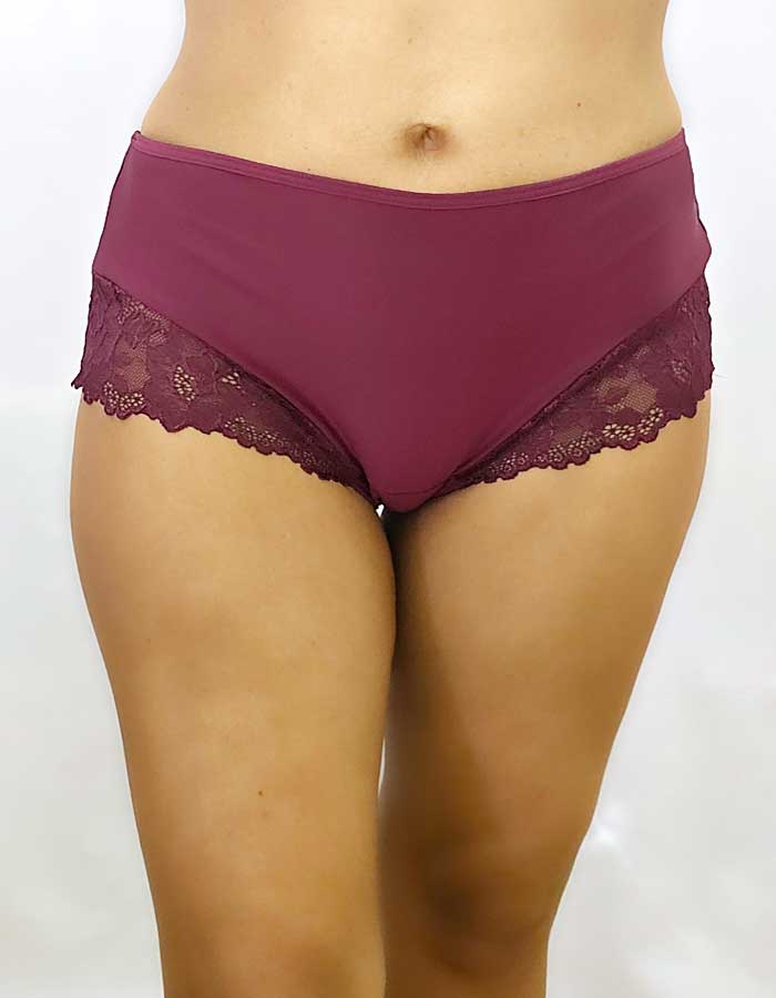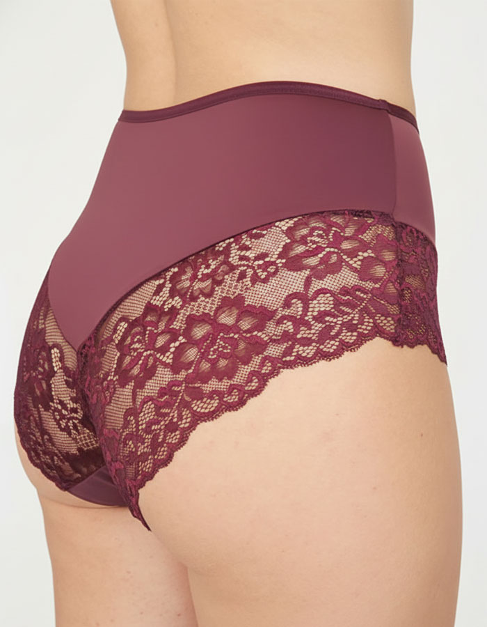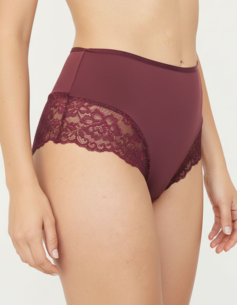 Луксозна бикина с висока талия от микрофибър и дантела, бордо, 264