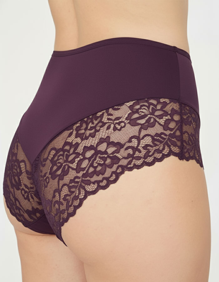 • Луксозна бикина с висока талия от микрофибър и дантела, бордо, 264Луксозна бикина с висока талия от микрофибър и дантела, бордо, 264