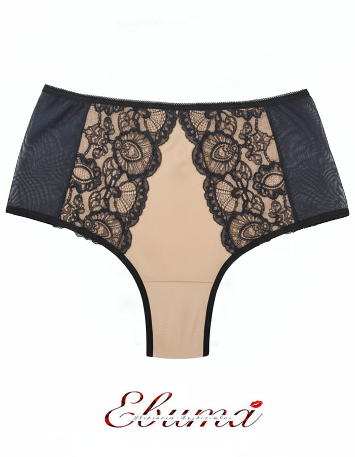 • Луксозна дантелена бразилиана с висока талия, бежово, 082Луксозна дантелена бразилиана с висока талия, бежово, 082