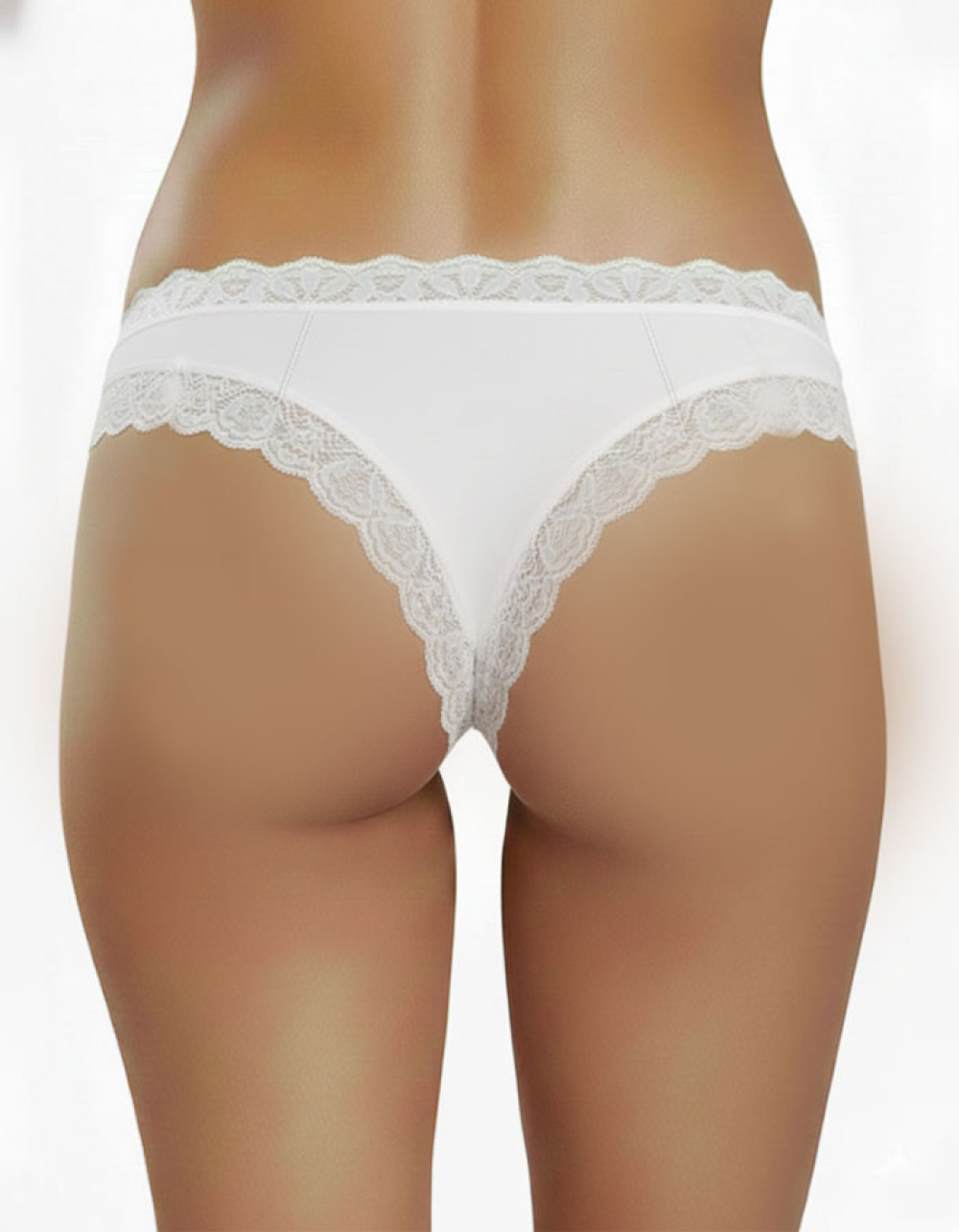 Луксозна бразилиана от микрофибър и дантелки, Band belt, бяла, 382