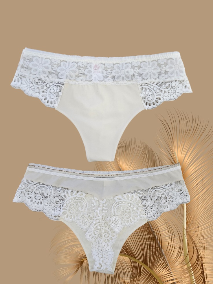 Този модел разполага с голямо хигиенно парче, което осигурява пълна защита и комфорт, без използването на ластици отпред и отзад. Изработена е от мек микрофибър и еластична дантела, които придават на бельото изключителна нежност и приятно усещане върху кожата.