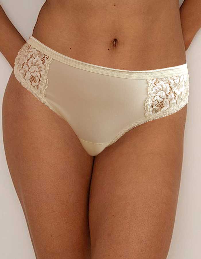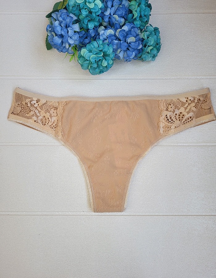 Бразилиана от фин микрофибър с дантелки отпред.