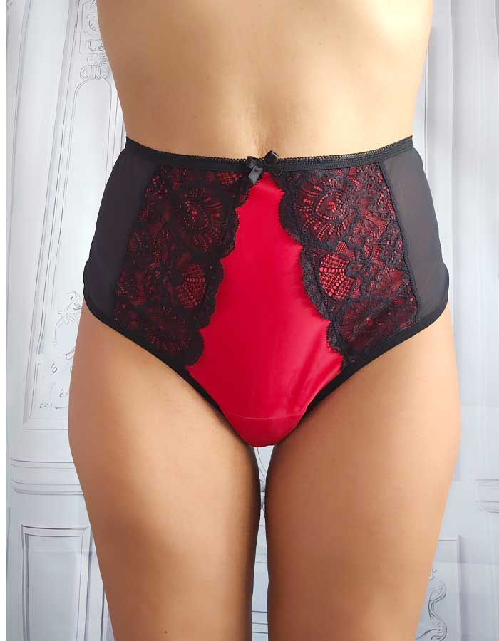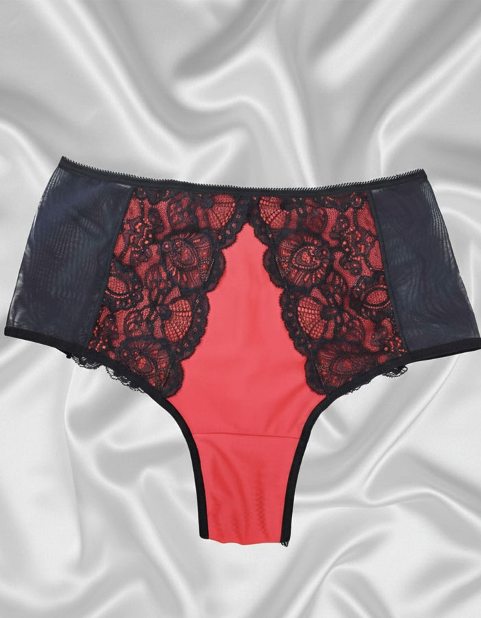 Луксозна дантелена бразилиана с висока талия, черно с червено, 082