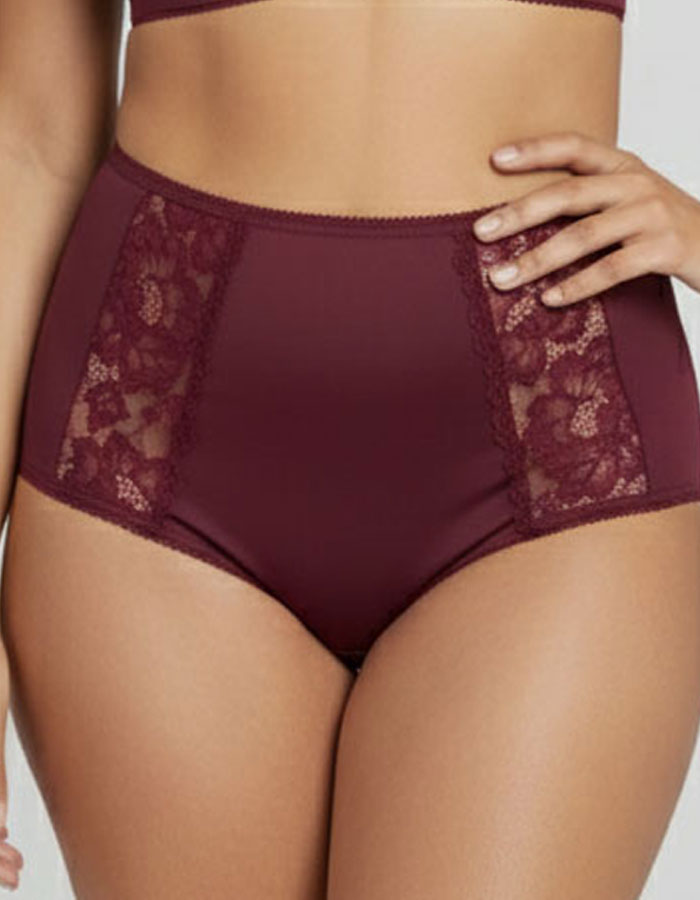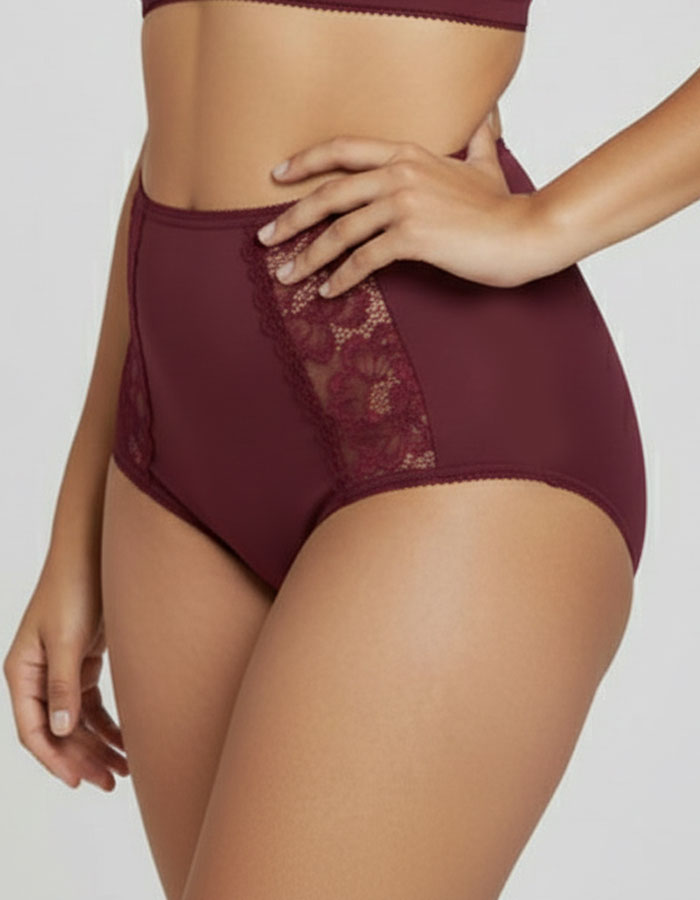 Оформяща бикина от микрофибър и дантелки с висока талия, бордо, 276