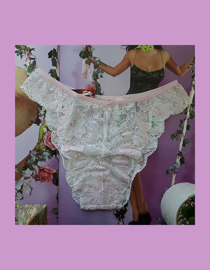 Ефирна дантелена бикина със средна дъбочина и памучно хигиенно парче.