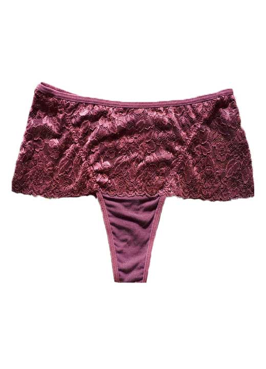 Дантелена прашка/ боксер с удължено микрофибърно парче на коремната зона със стягащ ефект и пищна дантела.