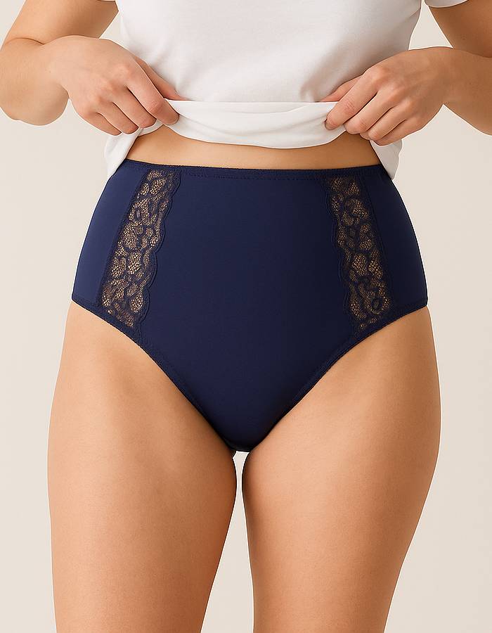 Оформяща бикина от микрофибър и дантелки с висока талия, тъмно синьо, 276