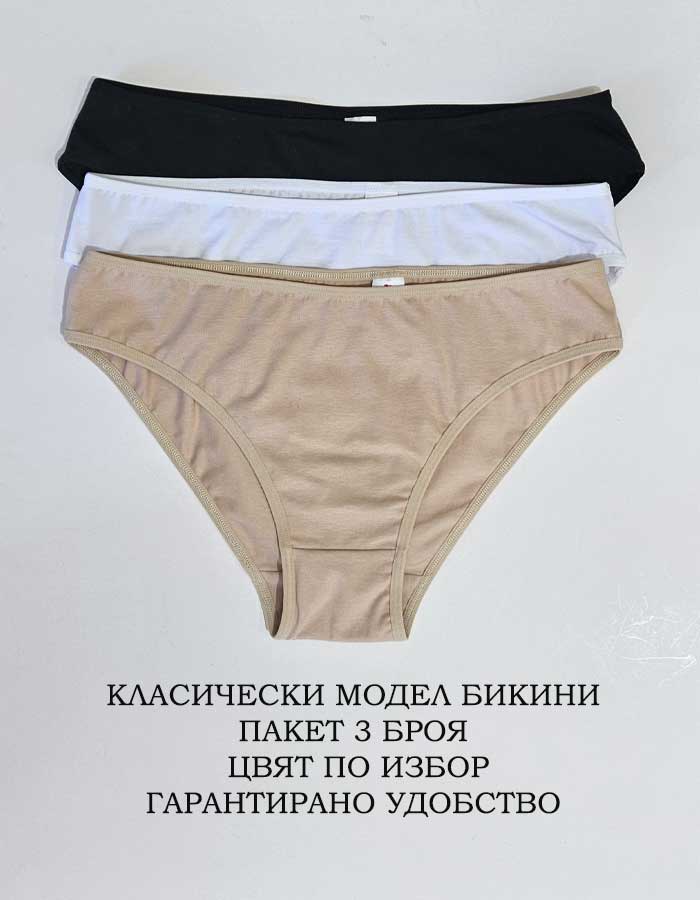 Пакет 3 броя памучни бикини със средна дълбочина, микс, 238