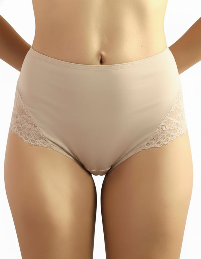 Висока талия бикина, която ще извае амфората ни, защото ще заглади паласките, ще покрие корема, ще скрие несъвършенствата, ще ги прибере. Моделът отзад е с дантела - мека, лека и дишаща, за максимален комфорт и да не се отбелязва под дрехата. Освен, че е красива е и функционална. Отпред също има дантела на свивките точно, за да не дърпа там, където обикновено има напрежение. Памучното хигиенно парче е допълнително прикрепено към предницата, за да не се навива. Моделът с тази кройка пасва точно по всички наши изисквания. Микрофибърът е мек и еластичен.КОД 230
