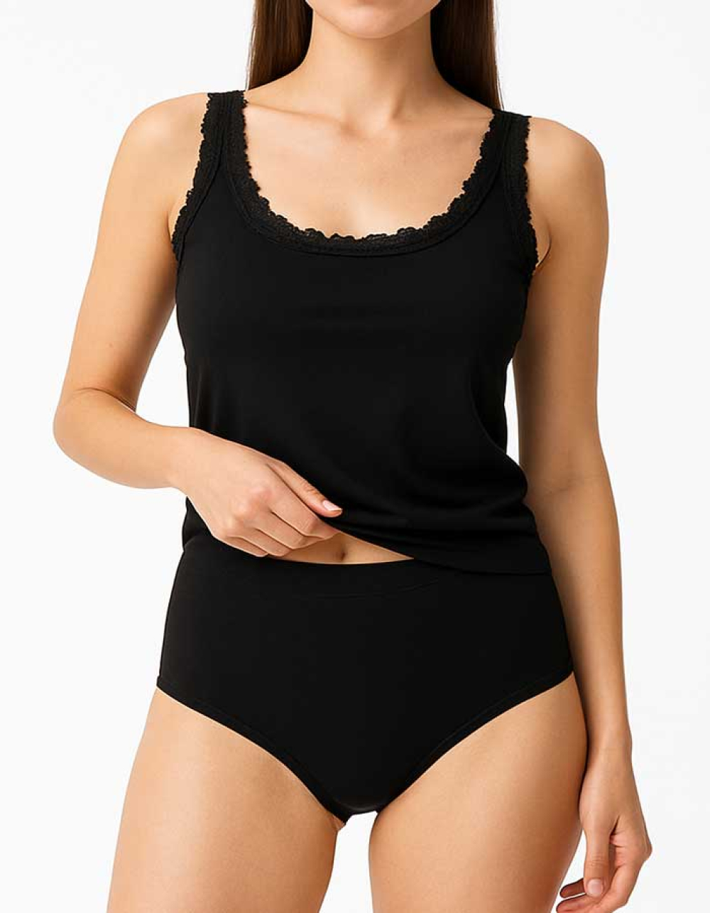 Удобен памучен комплект от потник с широки презрамки с дантела окрайчени.