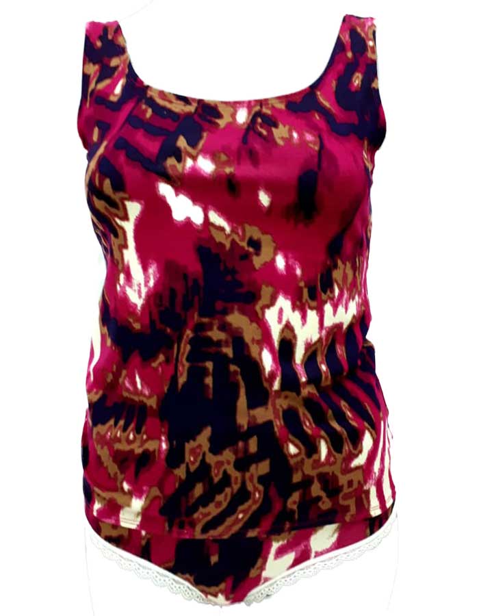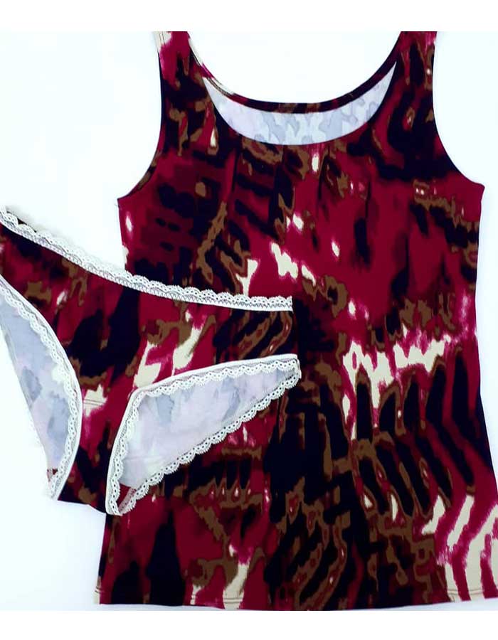 Памучен комплект от изчистен потник с бикина средна дълбочина окрайчена с дантелки, 046147