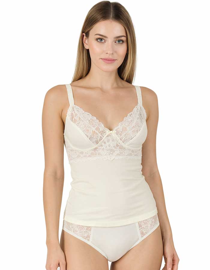 Удобен, практичен и красив памучен корсаж с дантелени меки чашки и регулатори.