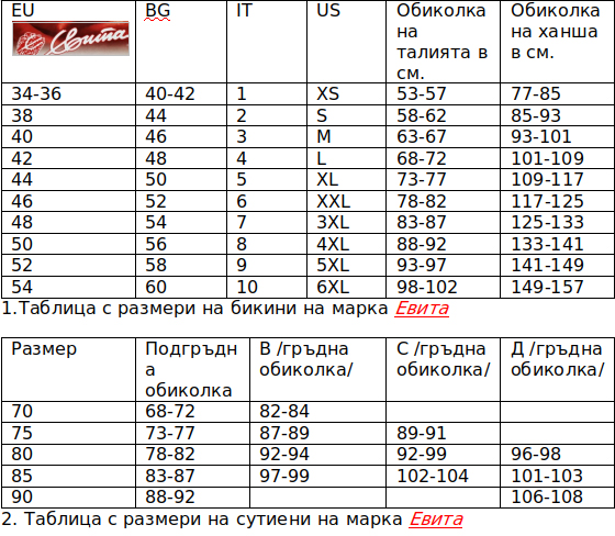 * Молим да обърнете внимание, че артикулите с по-голям размер са с по-високи цени.