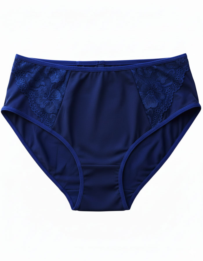 Памук и дантела отстрани, гладка задна част, висока талия,