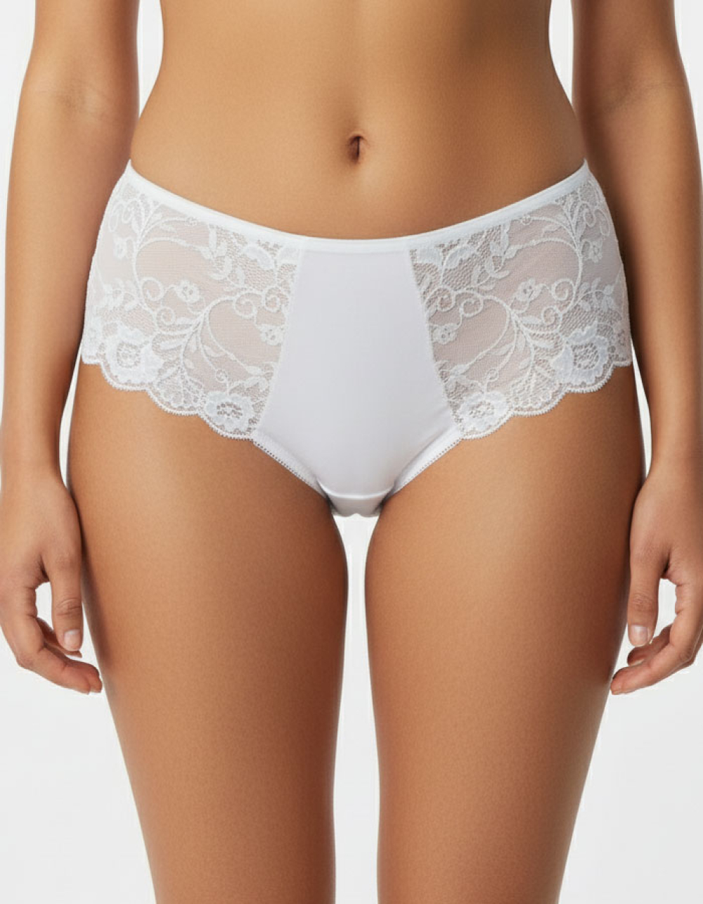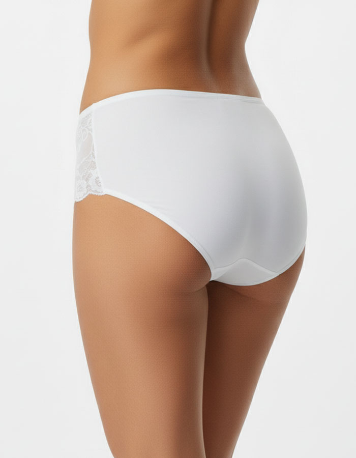 Класически модел бикина с дантела и с отлична покривност на задната част.