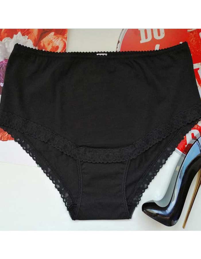Памучна бикина с висока талия с дантелени притурки окрайчена на задна част