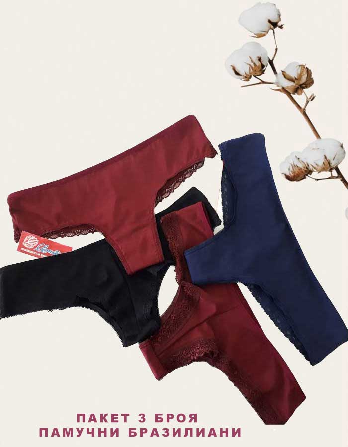 Сет 3 броя памучни бразилиани, микс, 379