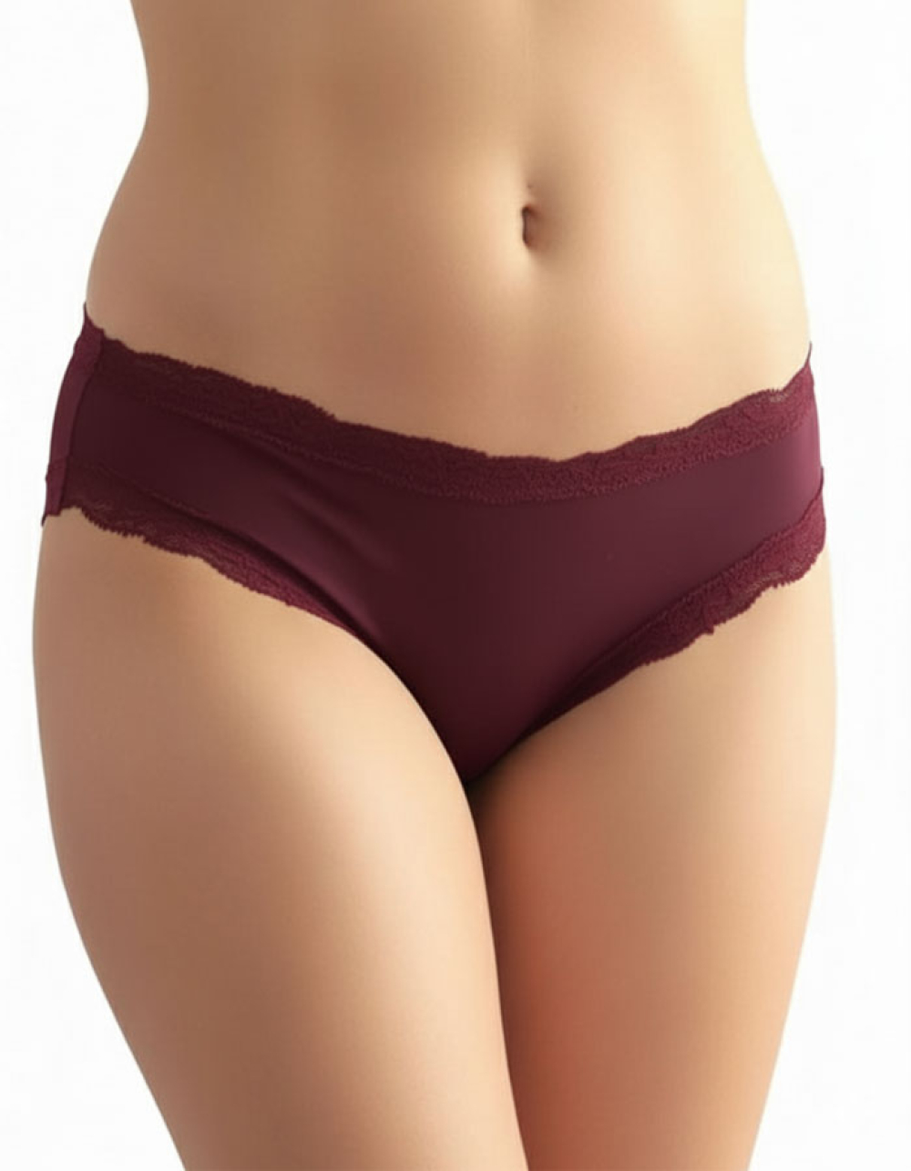 Красив и удобен модел бразилиана от висококачествено трико и нежна дантела по крачолите и талията.
