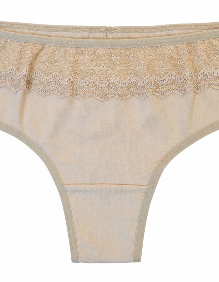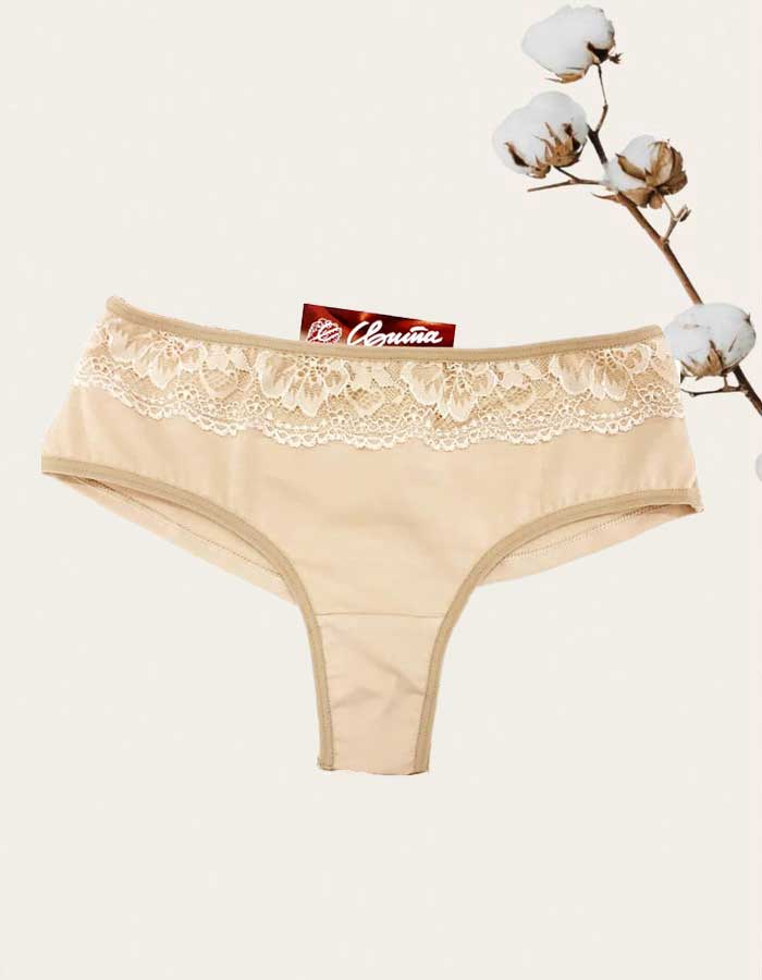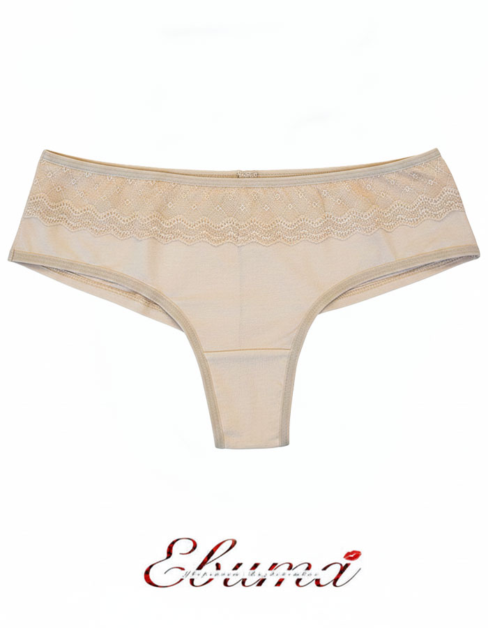 Памучна бразилиана с дантелка, бежово, 400
