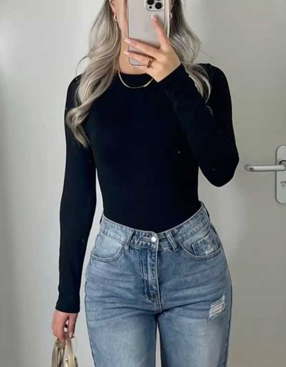 Удобното, топло и практично боди, което комфортно покрива слабата зона на кръста е наша задължителна добавка през по-студените дни. То може да се носи както самостоятелно, така и под сако или жилетка. Стилният черен цвят с красивият прибран ефект в панталон или дънки, създава една перфектна комбинация за красива визия.