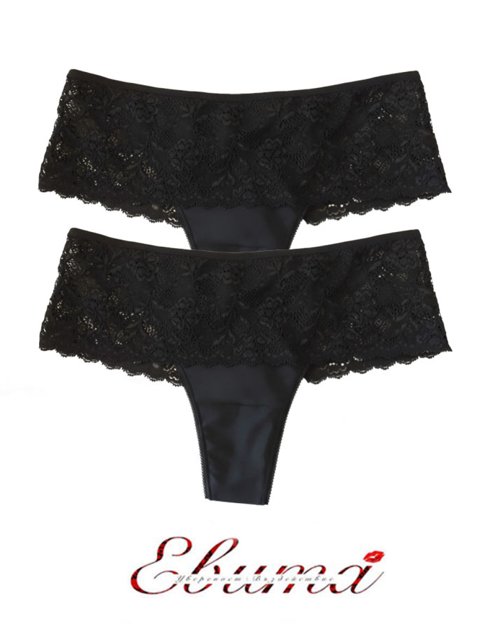 СЕТ 2 броя луксозни бразилиани, черен, Lace belt, 069